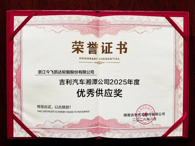 感恩信赖,砥砺前行。此次“优秀供应奖”,既是对过往合作的圆满总结,更是未来深化协同的全新起点。未来,今飞凯达将继续珍视与吉利的合作关系。在轻量化技术、绿色制造等领域持续精进,以更优质的产品、更高效的服务、更稳固的供应,与所有合作伙伴携手并肩,共绘汽车产业高质量发展的新蓝图! |